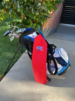 Set de golf Callaway XJ para niños. - Bolsa de golf azul y gris. - Incluye varios palos de golf. ( No todos ) - Funda para el driver - Patas plegables para la bolsa.