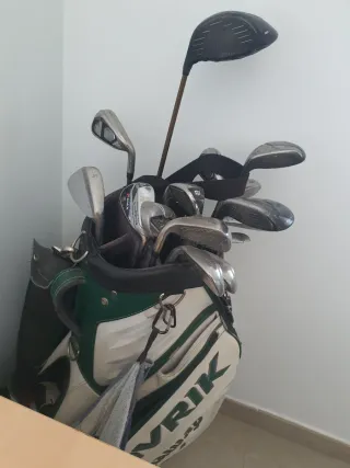 Vendo set completo de palos de golf en buen estado, con material de primeras marcas como Callaway, TaylorMade y Odyssey. Incluye: • Driver TaylorMade Burner • Hierros Callaway Big Bertha (varios números) • Putter Odyssey 2-Ball • Otros palos adicionales • Bolsa Callaway Golf con múltiples compartimentos Además, la bolsa viene llena de accesorios: • Tees de golf • Accesorios varios • Gorra de golf • Diferentes complementos para jugar ⚠️ Wallapop no me deja subir más fotos, pero el set está muy completo con muchos extras dentro de la bolsa que incluyo con la venta.