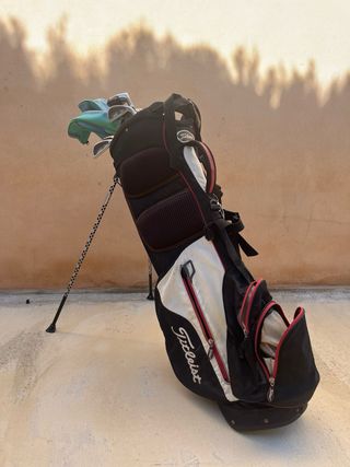 Bolsa de golf Mizuno y bolsa roja Inesis.