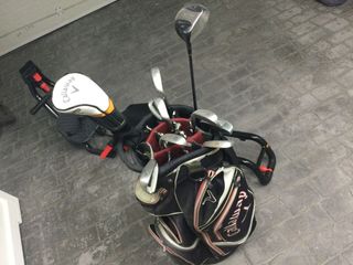 Se vende bolsa de golf Callaway junto con sus palos. - Bolsa de golf Callaway. - Incluye varios palos de golf.