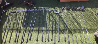 Se vende un lote de más de 30 palos de golf de diferentes marcas y tipos. Ideal para coleccionistas o para quienes se inician en el golf. - Incluye una variedad de palos. - Diversas marcas representadas. - Bolsa de golf incluida.