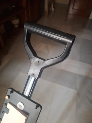 Carrito de golf diseñado para transportar manualmente tu bolsa de palos de manera cómoda. - Estructura principal de metal. - Ruedas desmontables. - Correas de sujeción para la bolsa. - El tarjetero no es el original sino que es uno que se le ha adaptado así como el portador de botella que tampoco es el original. - Se ha utilizado muy pocas ocasiones. - Es de la marca Mitsushiba El envío se haría con las ruedas desmontadas.