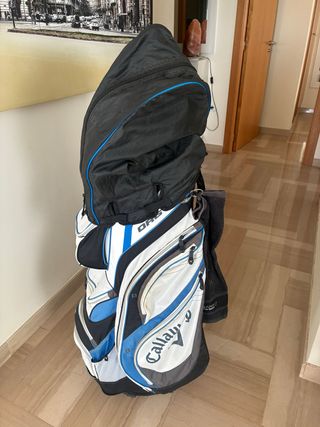 Completo juego de palos de golf Callaway. - Incluye bolsa de golf. - Fundas protectoras para los palos.