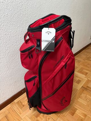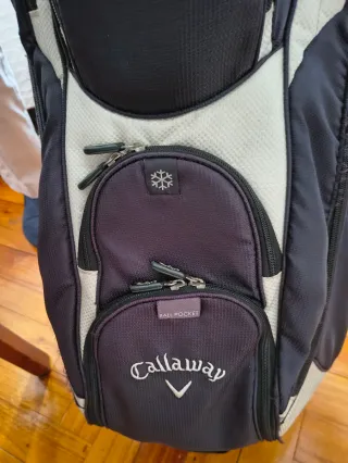 Bolsa de golf de la marca Callaway, diseñada para transportar tu equipo con comodidad y estilo. - Compartimentos amplios para palos. - Bolsillos adicionales para accesorios. - Material resistente y duradero. - Diseño moderno y funcional.
