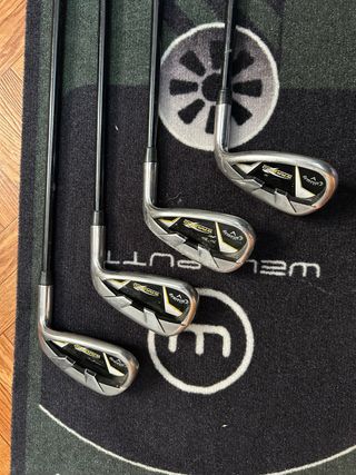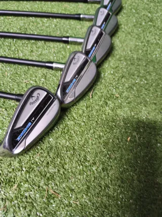 Set de hierros Callaway Warbird. - Incluye los palos SW, 9, 8 y 7. - Varillas de grafito. - Flex R-F.