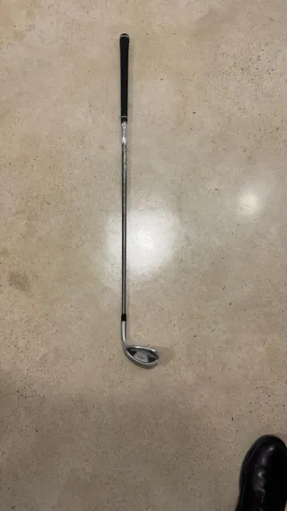 Palo de golf con mango negro y varilla metálica. Nuevo vale 145€ Callaway 2023 Cb 54(14) Wedge • Tipo de palo: Wedge de golf Callaway 54° / 14° (alto loft y buen bounce), ideal para juego corto alrededor del green y escapadas de bunker con control y spin.  • Para qué sirve: Perfecto para golpes precisos desde hierba corta, borde de green y bunkers, ayuda a elevar la bola con efecto y control de distancia.  • Condiciones: Nuevo, sin uso y con plástico protector tal como lo gané en un torneo. Estado impecable. • Ventajas: Diseño con grooves optimizados para máximo spin y control, y el bounce de 14° te da versatilidad en césped