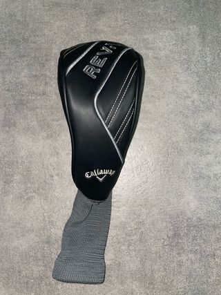 Funda protectora para palo de golf híbrido Callaway REVA. - Diseño en color negro con detalles plateados. - Tejido de punto gris en la parte inferior.