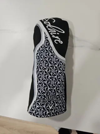 Funda para palo de golf con un diseño moderno y llamativo. - Color negro con detalles plateados. - Patrón geométrico blanco. - Bordado So Live en la parte superior. - Logo de Callaway en la parte inferior. - Funda para maderas.
