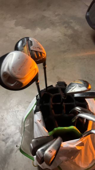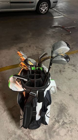 Algo negociable. Vendo bolsa de golf completa con 10 palos. Es un set híbrido ideal para iniciarse con material de alta calidad desde el primer día. Incluye marcas top (Callaway, Odyssey, Titleist) combinadas con un medio set de Wilson para hierros. Putter Odyssey White Hot XG #9 Driver Callaway FT-5 Draw (10º): Varilla Fujikura Stiff Wedge Titleist Vokey (60º) Wedge Callaway X-Tour (56º) Bolsa de Carro Callaway: Grande, robusta, con múltiples bolsillos y separadores. Cremalleras funcionando.