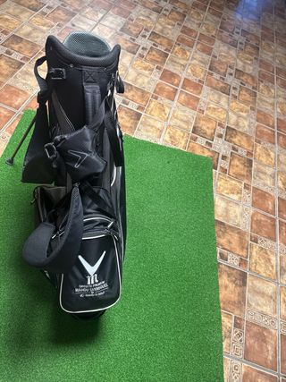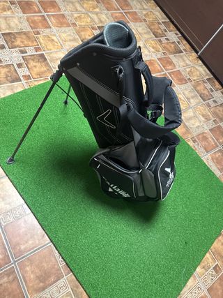 Bolsa de golf Callaway en color negro. Es ligera y fácil de transportar y de guardar ya que no es rígida, bolsillos para chubasquero o pantalones de agua. Bolsillo para bolas. Cinta para hombro y asa. - Diseño moderno con logo Callaway. - Compartimentos para palos 6 palos. Se vende sin los palos . Poco uso, buen estado. Putt hierro drive green