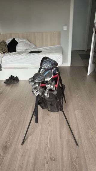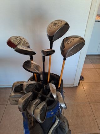 Pack completo de golf que incluye bolsa, hierros y driver. Incluye: - Bolsa. - Set de hierros Callaway Strata del P al 6. - Driver, madera 3 y 4 de la marca Mc Gregor - Incluye putter Wilson.