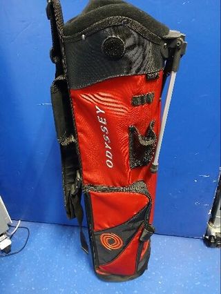 Carro de golf Callaway en color rojo y negro. Diseño moderno y funcional. - Compartimentos para palos. - Bolsillos de almacenamiento. - Asa de transporte.