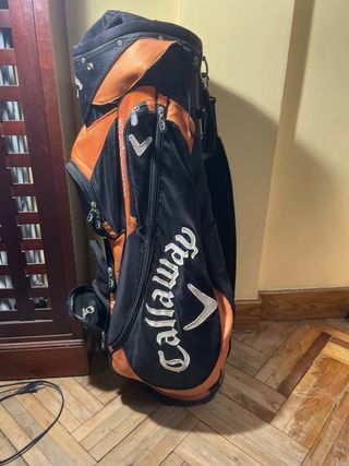 Bolsa de golf Callaway con tripode, 7 compartimentos para palos, y trae la funda superior para la lluvia. Tiene varios bolsillos rotos (de ahí su precio). PRECIO NO NEGOCIABLE.