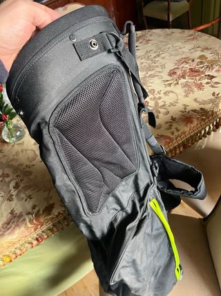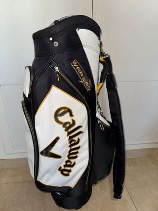 Bolsa de golf de la marca Callaway, utilizada solo dos veces. - Color negro con detalles plateados. - Múltiples compartimentos y bolsillos con cremallera. - Correa ajustable para el hombro.
