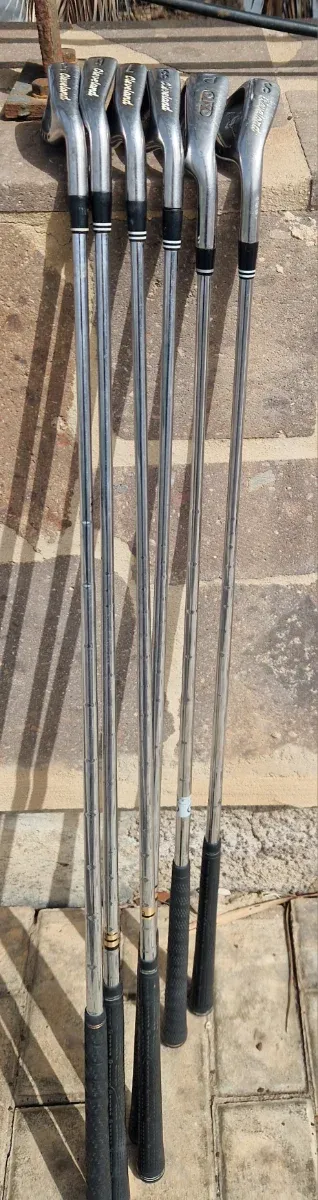 Set de palos de golf Cleveland. - Incluye palos 5, 6, 7, 8, P y S. - Marca: Cleveland. - Varillas de acero