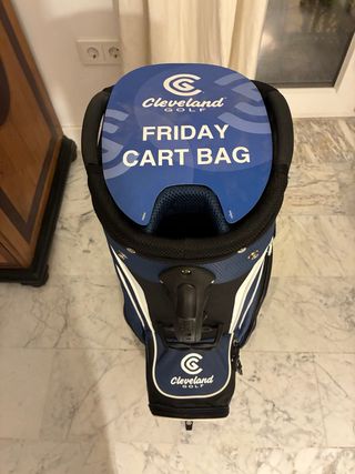 Bolsa de golf Cleveland, modelo Friday Cart Bag, en color azul y gris. Aún conserva sus etiquetas. - Diseño moderno y funcional. - Compartimentos amplios para palos y accesorios. - Asa superior para facilitar el transporte.