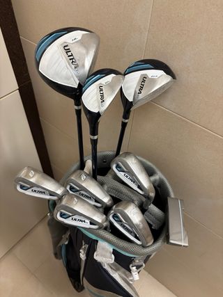 Set palos de golf WILSON ULTRA MUJER diestra en PERFECTO ESTADO! Se han utilizado un trimestre, apenas tienen marcas de uso. Caras y grips impecables! PVP nuevos 390€ Son ideales si estás empezando hasta nivel medio ya que cuentan con varilla de grafito y flexibilidad lady. Incluye: - Driver - Madera - Hibrido - Hierros 7, 8, 9 - Pitch Wedge - Sand Wedge - Putter - Bolsa con funda de lluvia Inesis xls ultra profile 100 500 900 put taylormade callaway warbird rbz titleist strata palos golf Odyssey scotty Cameron 1200 reflex juego p750 p770 p790 cobra mizuno ping big bertha paradym ai smoke