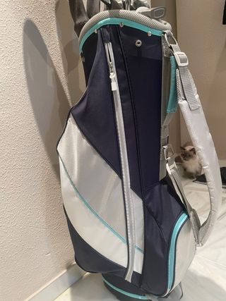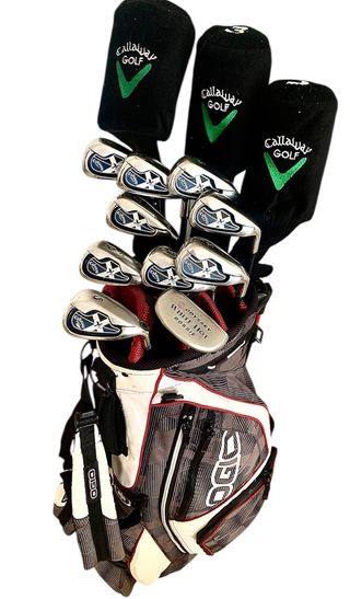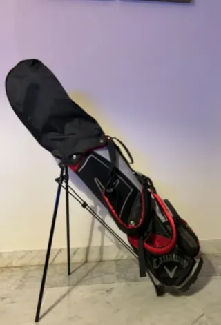 Set de golf Callaway con bolsa. Incluye: - Driver - Put - Hierros 3, 7, 9 - Sand Wedge - Maderas 3, 5, 7 - Hibrido - 3 calcetines para las maderas - Varias bolas y tees para jugar