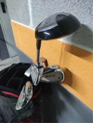 Set de palos de golf de la marca Exia. Incluye varios hierros y un driver. - Palos de golf Exia. - Incluye driver. - Varios hierros.