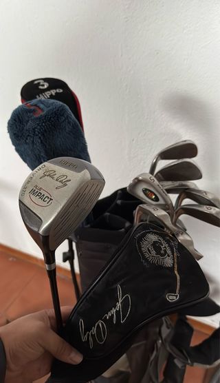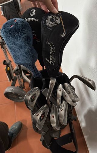 Set de golf que incluye el siguiente material: - Driver Hippo John Daly Plus Impact 370 - Madera Hippo ITX² (15°, nº3) - Set completo hierros Ben Sayers M2i (desde el 4 hasta el Sand Wedge “S” del 4-PW + SW) REGALO bolsa de golf y un carro de arrastre para su transporte.