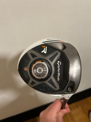 Driver de golf Taylormade R1. - Diseño ajustable. - Color blanco y negro con detalles naranjas. Aunque la pintura esta un poco gastada, el palo esta en muy buen estado. Lo uso por cambio a uno mas nuevo pero esta genial para gente que este empezando y quiera un driver fiable. Varilla Regular
