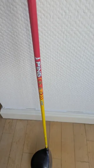 Driver de golf PING para jóvenes golfistas. Diseñado para facilitar el juego y el aprendizaje. - Varilla de color amarillo y rojo. - Grip negro con puntos blancos. - Longitud de palo 86cm - Edad hasta 10-11 años
