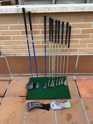 Este juego de palos de golf incluye todo lo necesario para empezar a jugar. - Incluye driver, maderas, hierros, putt y bolsa. - Marca Wilson, Callaway y Odyssey.