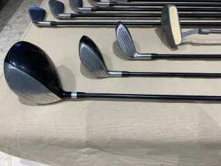 Lote de palos de golf de diferentes tipos. - Incluye un putter. - Variedad de hierros. - Un driver. - Maderas.