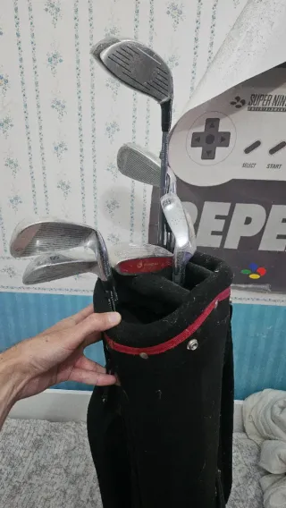 Set golf niña Callaway XJ Junior (5–8 años) 📄 DESCRIPCIÓN: Set de golf original Callaway XJ Hot Junior para niña (5–8 años), ideal para iniciarse o seguir progresando con material de alta calidad. Incluye 6 palos Callaway: Driver con funda Madera 3 Híbrido Hierro 7 Sand Wedge Putter (ligeramente personalizado con pintura, no afecta al rendimiento) Estado general muy bueno. Todo limpio, sin óxido, y con mucho uso por delante. Equipo pensado para niñas: ligero, cómodo y adaptado a su edad y altura. Precio en ti