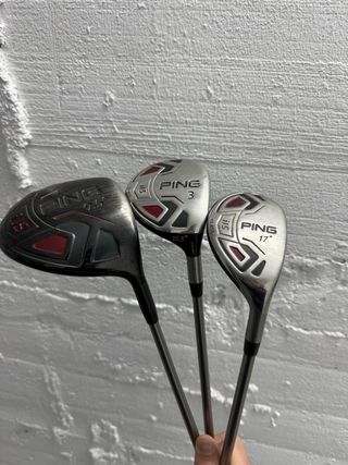Driver y madera 3 PING G5 en excelente condicion. Lofts 10.5 y 13. Varillas ALDILA NV. Grips PING y GOLF PRIDE. - Driver PING G5 Titanium 460cc, 10.5° - Madera 3 PING G5, 13°