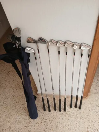 Juego de palos de golf de segunda mano pero con poco uso, en buen estado. - Grips completamente nuevos, de hace menos de un mes - Incluye: putter, hierros 3-9 (más pitching y sand) de zoom confidence, una madera 4 de confidence también, una madera 3 y driver ambos de marca titleist. - Recién limpiados - También incluye bolsa de transporte más correa para llevarlo en la espalda. - Buen estado de conservación, todas las cremalleras van perfectas - También viene incluido la parte de plástico que protege contra la lluvia Solo venta a mano Si no es muy lejos puedo hasta entregar por un precio razonable Preguntar sin compromiso!