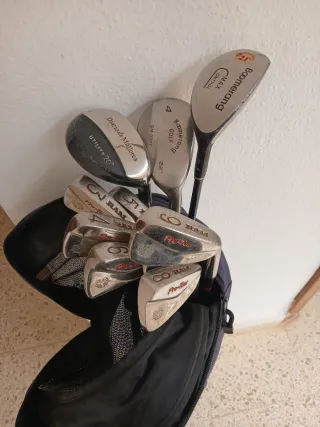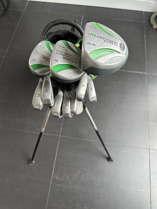 Set de golf Wilson completo + bolsa tripode Vendo set completo de golf para derechos marca Wilson, ideal para empezar o para jugador ocasional. Incluye bolsa Wilson Profile con patas muy cómoda para transportar. Incluye: Driver Wilson DX Madera 3 Híbrido 5 Hierros Wilson: 6, 7, 8, 9 Wedge / Pitching Putter Wilson Bolsa Wilson con tripode y varios bolsillos Todo está en buen estado y listo para jugar, con signos normales de uso en las caras de los palos pero sin golpes estructurales. Perfecto para: principiantes empezar a jugar sin gastar mucho tener un set completo para el campo