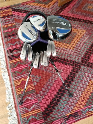 Callaway ft fusion driver Cobra 20° hybrid Taylormade 22° hybrid Callaway x16 irons 3-sw Tour select putter Callaway stand bag