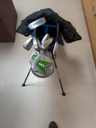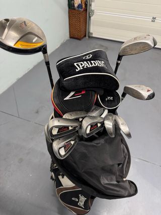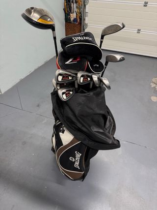 Conjunto completo de palos de golf de la marca Spalding, ideal para empezar a jugar o para renovar tu equipo. En total 11 palos. - Incluye driver, maderas, hierros (6/7/8/9) y putter. - Fundas protectoras para las cabezas de los palos. - Bolsa de golf negra con compartimentos en perfecto estado.