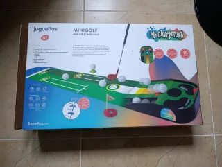 Set de mini golf Juguettos modelo Megaventura. - Incluye 1 minigolf con rampa y putter. - 1 palo ajustable en altura con 2 palos intercambiables. - 1 driver. - 15 pelotas de golf. - 1 tapa. - 1 soporte para pelotas (fixel).