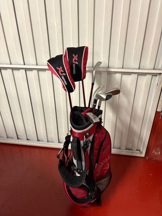 Set de golf Callaway con bolsa. Incluye: - Driver - Put - Hierros 3, 7, 9 - Sand Wedge - Maderas 3, 5, 7 - Hibrido - 3 calcetines para las maderas - Varias bolas y tees para jugar