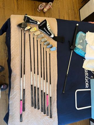 Completo set de palos de golf TaylorMade R7, perfecto para jugadores de todos los niveles. Incluye una bolsa de golf para su transporte. grips antiguos y bolsa poco estable pero que cumple con su función - Driver - Maderas - Hierros - Putter - Bolsa de golf