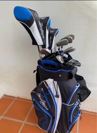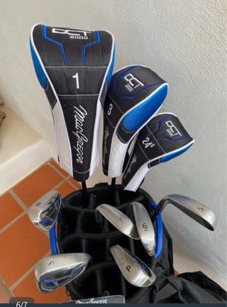 Kit completo de golf MacGregor DCT 2000, ideal para iniciarse o mejorar tu juego. Incluye bolsa y palos. Vendo set completo de golf MacGregor DCT 2000 en muy buen estado. Perfecto para jugadores que quieren iniciarse o para alguien que quiera un equipo completo sin gastar mucho. Incluye: • Driver • Madera 3 • Híbrido 24° • Hierros 5, 6, 7, 8, PW y SW • Putter MacGregor • Bolsa MacGregor en muy buen estado con varios compartimentos • Fundas para los palos Los palos están muy bien cuidados, con marcas normales de uso pero en perfecto estado para jugar. Los grips están correctos y listos para salir al campo o al driving range