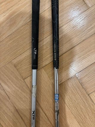 Se venden tres palos de golf con sus respectivas fundas protectoras. Ideales para complementar tu equipo. - Palo de golf número 7. Tyson 400, loft 22 - Palo de golf número 5. Tyson 400, loft 19 - Palo de golf Hibrido loft 24, Hippo Houdini En buen estado y con sus fundas como se ve en la foto