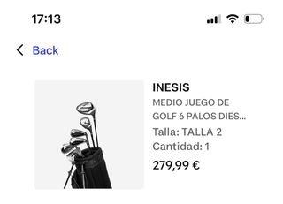 Vendo kit de golf Inesis para niños 8-10 años en muy buen estado. Al set original de Decathlon se le añadió hibrido y sand wedge también de decathlon que completa el juego. Incluye: • Bolsa original Inesis • Hierro 7/8 • Hierro 9/P • Sand Wedge • Putter • Hibrido • Driver Perfecto para iniciarse o seguir progresando en la escuela de golf. Uso normal, bien cuidado. Precio negociable dentro de lo razonable.