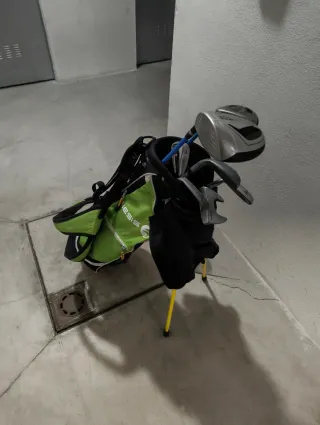 📌 Set de palos de golf de iniciación – Spalding ✅ Adecuado para niños y jóvenes de hasta 1,65 m de estatura. ✅ Incluye de serie: una madera, hierro 7, hierro 9 y putter. ✅ Como extra, añadí un híbrido de calle y un wedge 56 (equivalente a sand wedge), ambos en la misma talla que los originales. ✨ Palos con muy poco uso, en excelente estado. incluye también bolsa Spalding con trípode. 👉 Opción perfecta para iniciarse en el golf con un equipo completo y de calidad.