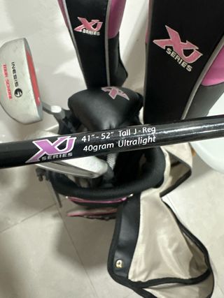 Set de palos de golf junior XD Series, ideales para jóvenes golfistas. - Miden entre 41 y 52 pulgadas de largo. - Peso ultraligero de 40 gramos. - Diseño J-Reg.