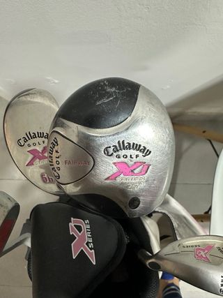 Set golf niña Callaway XJ Junior (5–8 años) 📄 DESCRIPCIÓN: Set de golf original Callaway XJ Hot Junior para niña (5–8 años), ideal para iniciarse o seguir progresando con material de alta calidad. Incluye 6 palos Callaway: Driver con funda Madera 3 Híbrido Hierro 7 Sand Wedge Putter (ligeramente personalizado con pintura, no afecta al rendimiento) Estado general muy bueno. Todo limpio, sin óxido, y con mucho uso por delante. Equipo pensado para niñas: ligero, cómodo y adaptado a su edad y altura. Precio en ti