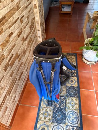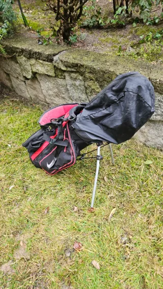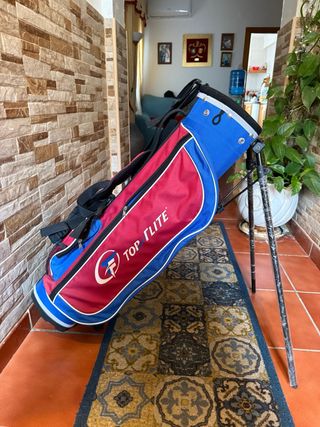 Set de golf junior completo, usado e ideal para iniciarse en este deporte. Incluye bolsa y 11 palos. - Bolsa de golf de tamaño junior. - 12 palos de golf.