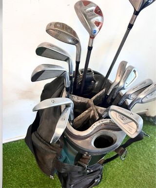 ¡SET DE GOLF COMPLETO PARA JUGADORES ZURDOS! Vendo set completo de golf Founders Club, ideal para iniciación. Incluye bolsa, maderas, hierros y putter. Destacados: Orientación: ¡Palos para ZURDOS (Left-Handed)! Driver: Nº 1 (Titanium 460cc) Founders Club. Maderas: Nº 3, Nº 5 y Híbrido 22º. Hierros: Set completo (incluye 6, 8, 9, etc.). Putter: Modelo Founders Club Tour Series (Mazo). Extras: Bolsa de golf, Guante Inesis, Tees y Cubiertas para maderas. Usado pero en buen estado. ¡Listo para jugar!