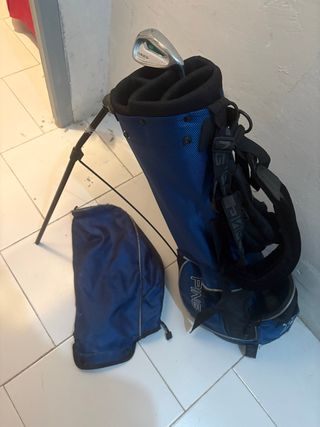 Bolsa de golf PING de color azul, diseñada para niños. Incluye una funda protectora. - Color azul vibrante. - Marca PING. - Incluye funda para palos. -Regalo hierro 7