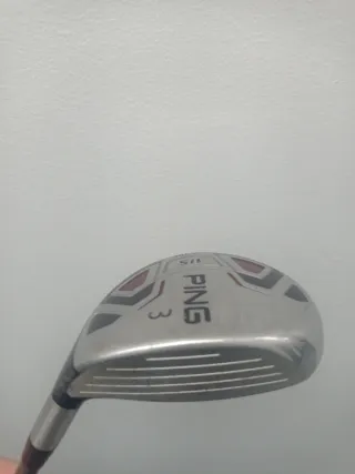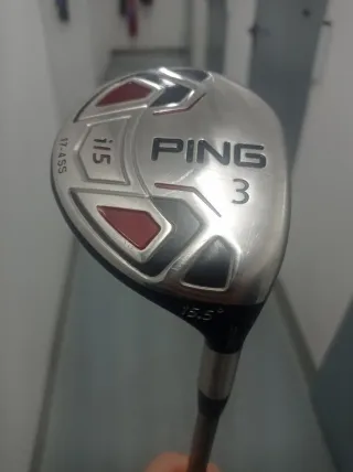 Madera de calle PING 3 mod.i15, ideal para mejorar tu juego. HACE MUCHÍSIMA DISTANCIA, supera los 200 metros. Apenas usada, se ve en la cara del palo y el grip. Tiene una rayitas en la cabeza del palo por el roce con los hierros, se ve en la fotos que no es mucho. La vendo porque uso varillas más flexibles. - Modelo: Madera de calle 3 - Marca: PING modelo i15 - Varilla regular Flex marca PING - Gripe original de PING - Loft: 15.5 grados - Con funda (Inesis)