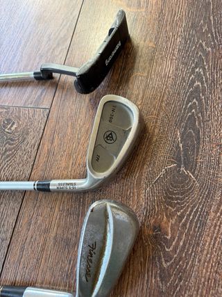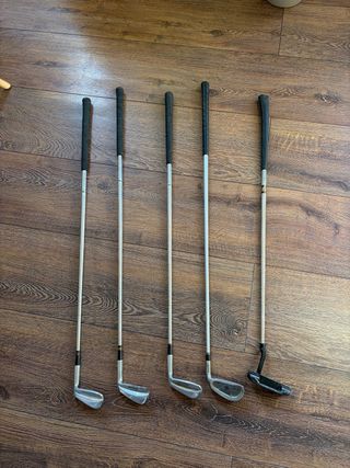 Conjunto de cinco palos de golf, incluyendo un putter. Talla L Números 6, 7, 9 y 10 Son heredados, no sé de golf, son de distintas marcas.