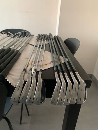 Set de palos de golf Mizuno, ideales para pitch and putt. - Incluye palos con números S, P, 9, 7, 5. - Varillas de metal. - Mangos de goma. - Posibilidad de vender individualmente 20 eur unidad