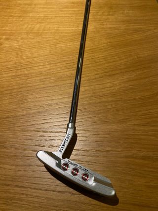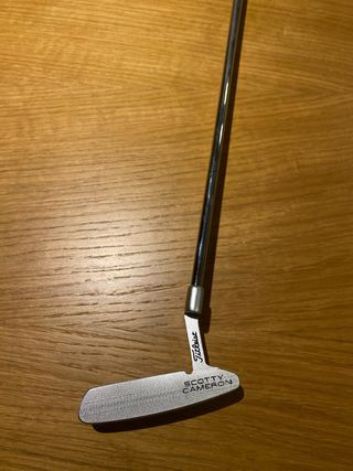 Palo de golf Scotty Cameron de Titleist. Un accesorio de alta calidad para golfistas. - Diseño clásico y elegante. - Acabado metálico plateado.